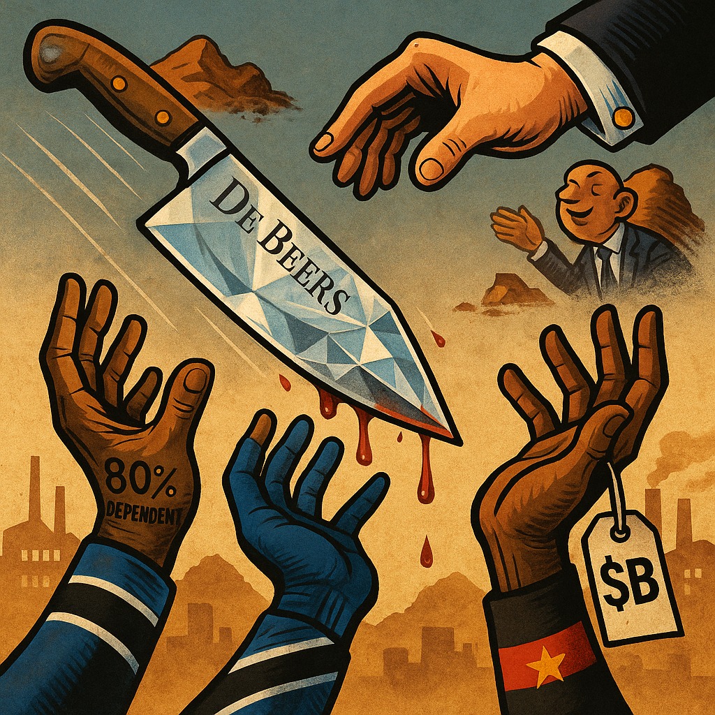 "Botswana and Angola are bidding $5 billion for the world's most iconic diamond brand. The current owner is fleeing to copper. Lab-grown stones are crushing prices. And two African nations—already dangerously dependent on diamonds—think this is their moment. Resource sovereignty or expensive addiction? By 2027, we'll know who read the market right."